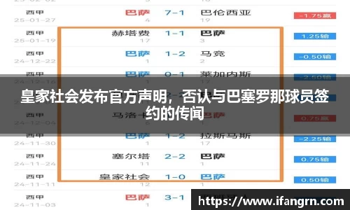 皇家社会发布官方声明,否认与巴塞罗那球员签约的传闻